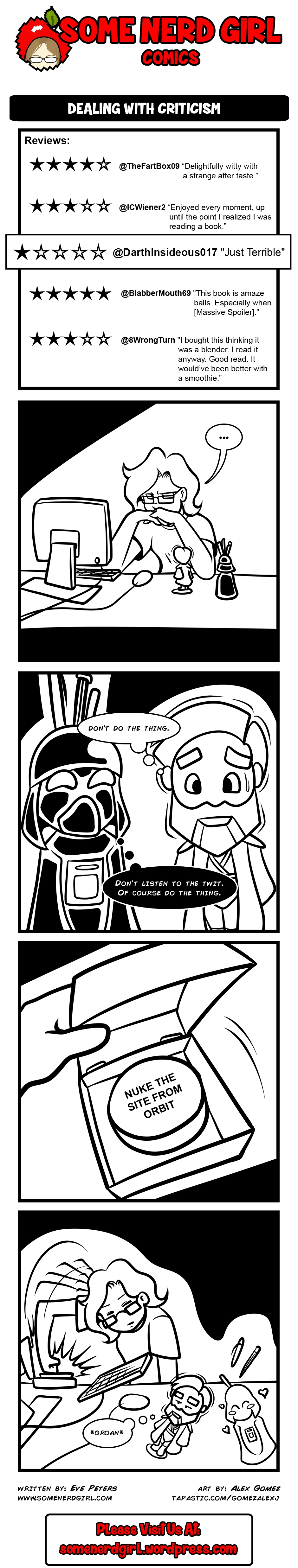 Those one star ratings can be a bitch. And I MIGHT still be learning how to cope with criticism.