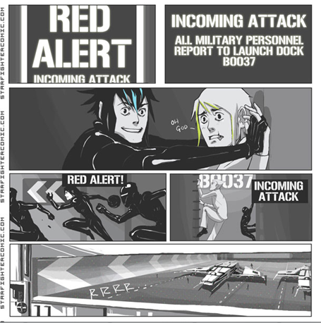 6. Starfighter: This one does not do so well with the feminist aspect as it appears to take place in some all male dystopian future in space. [http://starfightercomic.com/comic.php]